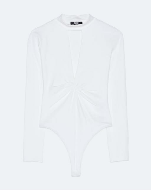 Bodysuit with slit and gathered detail